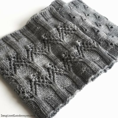 Knit in a worsted weight yarn, you’ll find the stitch patterns bold and satisfying to work up. There are directions for a smaller neck warmer that you can tuck under a jacket without bulk as well as for a double loop cowl. Both are knit in the round from the bottom up. Whether you like charts or written instructions, this pattern has you covered. The last page even contains a handy checklist to help you keep track of which round you are working for each of the two stitch patterns.
